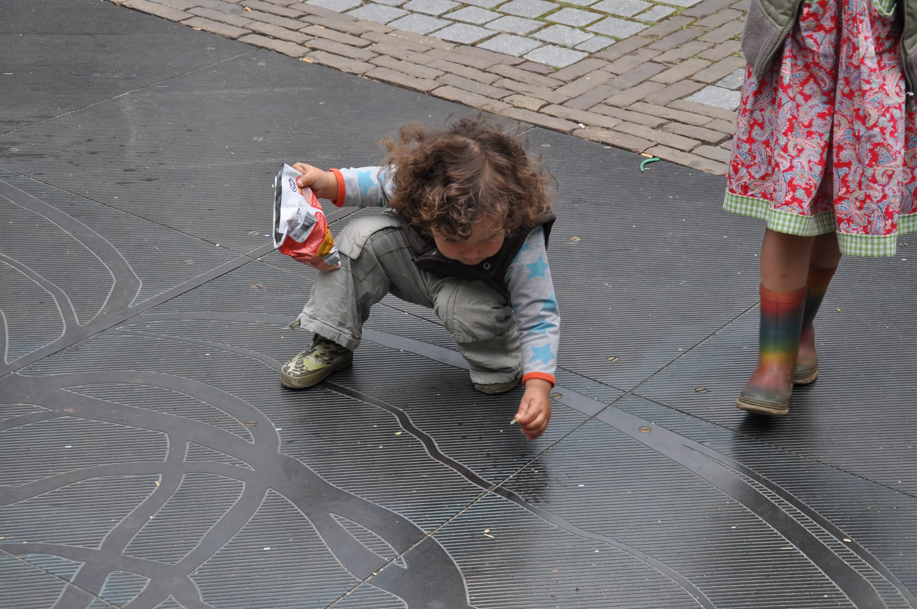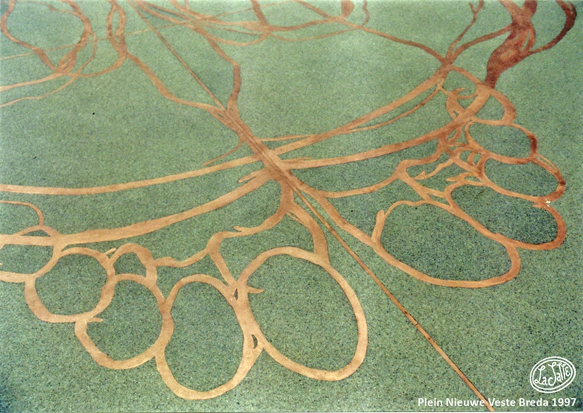 De eerste versie van dit kunstwerk was van tegels van keramiek. Deze versie is kapot gegaan door de vorst. De kunstenaars hebben een tweede versie gemaakt in brons. Deze versie is gestolen. Inmiddels ligt de derde versie op het binnenplein van Nieuwe Veste, deze is ook van brons, maar stevig verankerd in de grond.