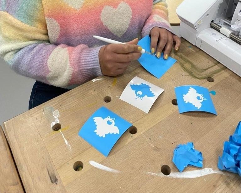 Je kunt gebruik maken van de stickersnijder om tekst of afbeeldingen te snijden uit flexfolie.