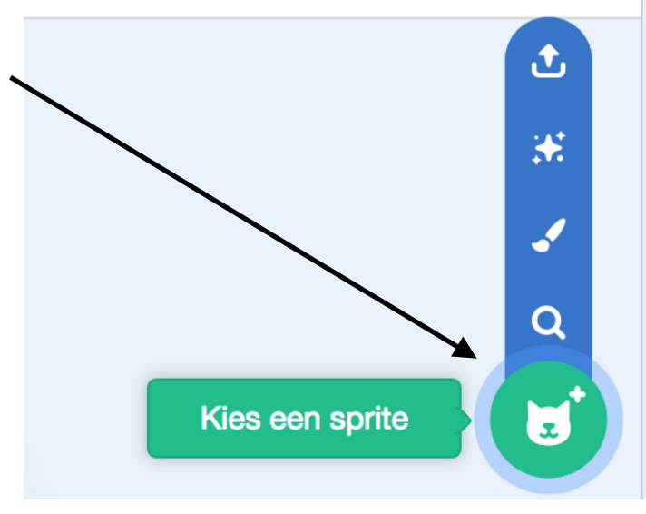 We gaan nu een nieuwe sprite maken! Klik rechts onderaan op “Kies een sprite” en kies een afbeelding uit die je wil gaan animeren!