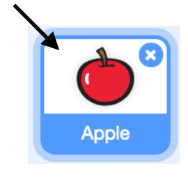 Verwijder de kat sprite door op het blauwe kruisje rechts boven Sprite1 te klikken. Klik nu op de sprite die je hebt toegevoegd. Als voorbeeld kiezen wij voor een appel. We kunnen nu beginnen met het animeren van je sprite!