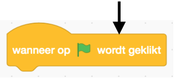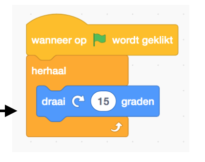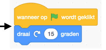 Sleep het blok “draai 15 graden” onder het blok met de groene vlag.