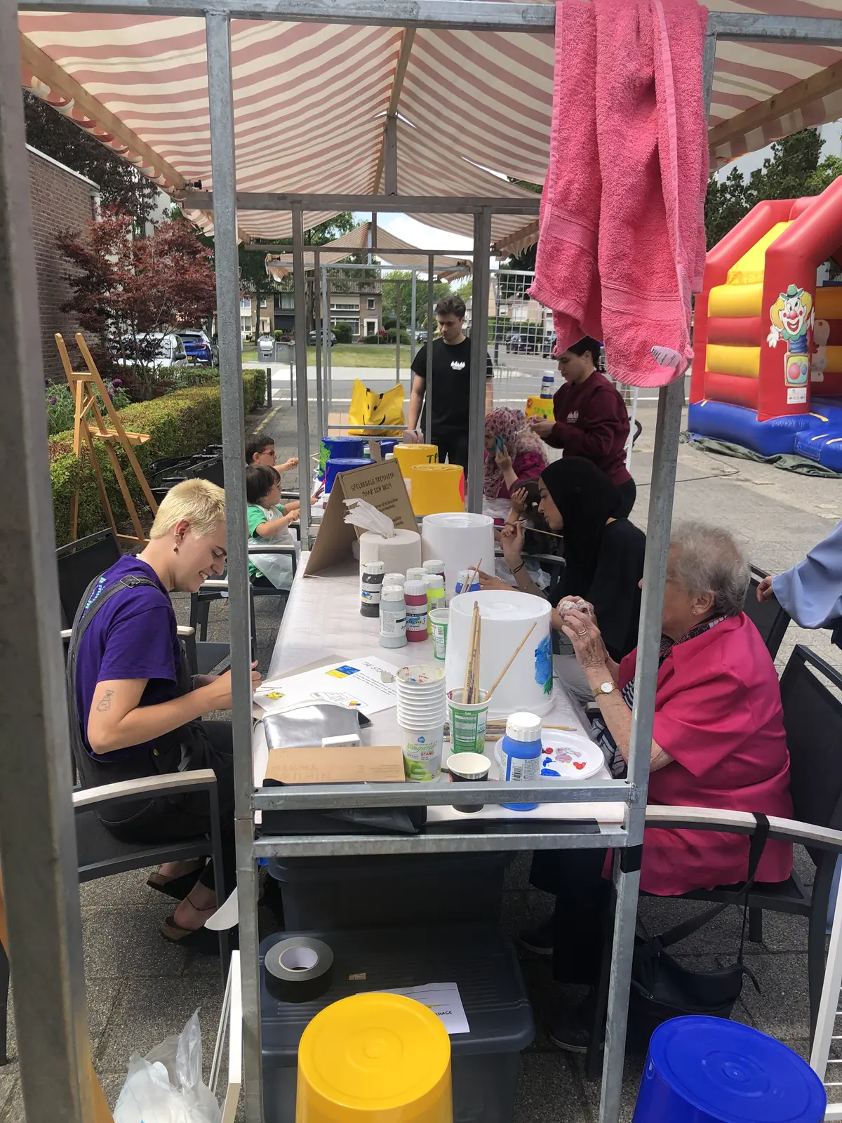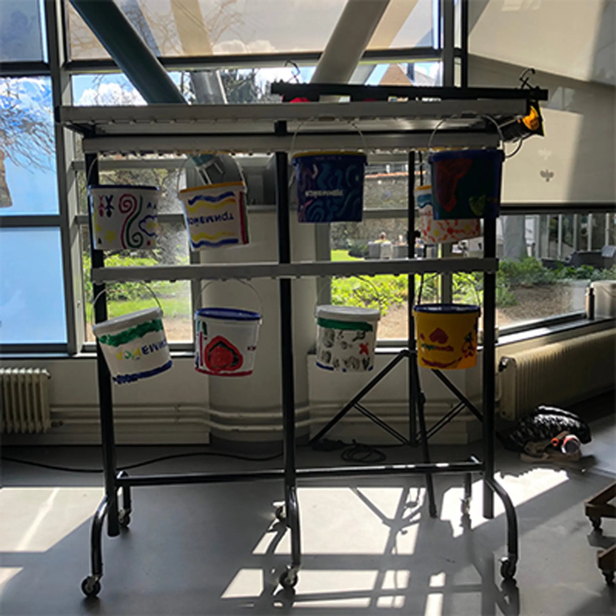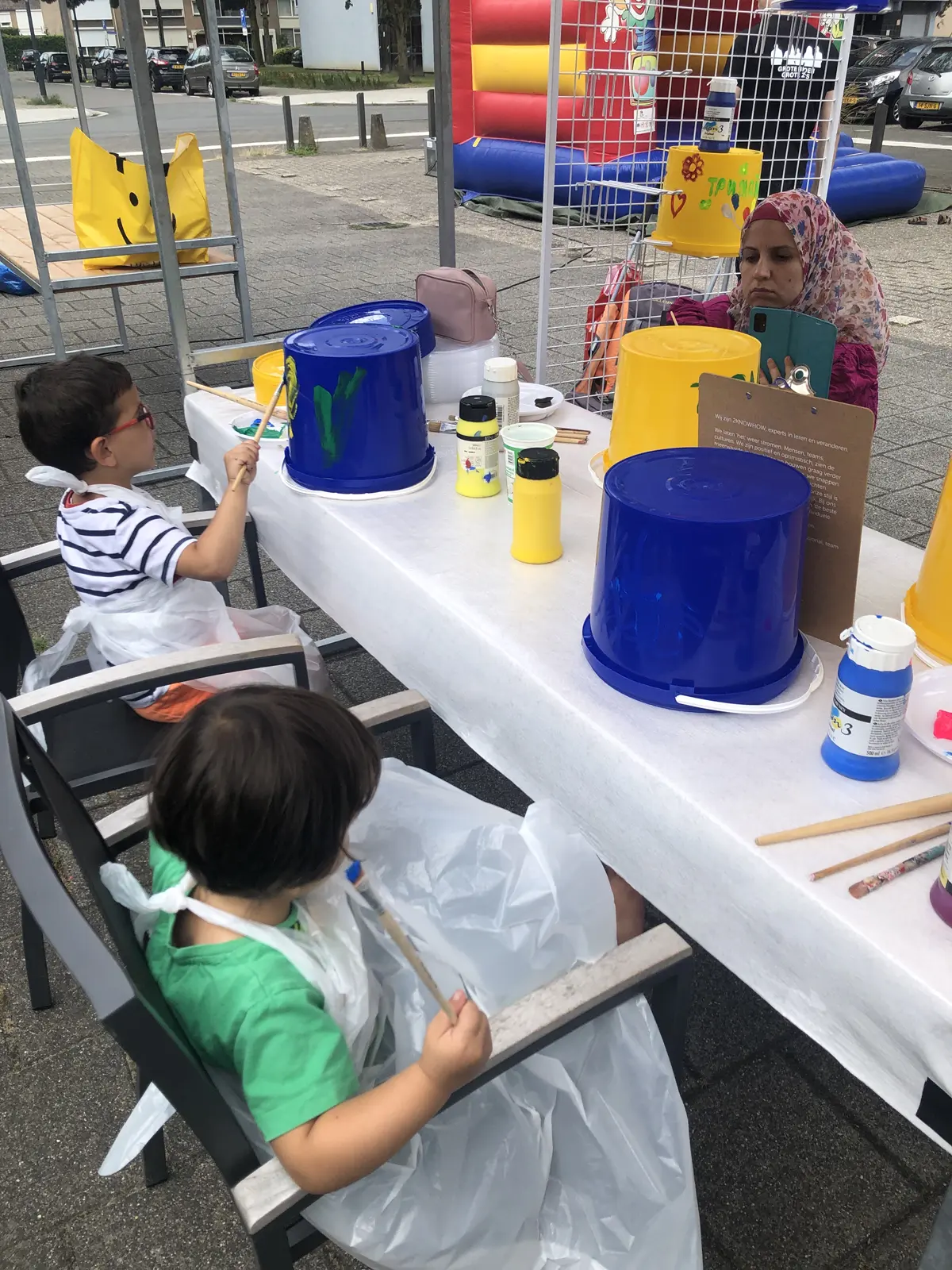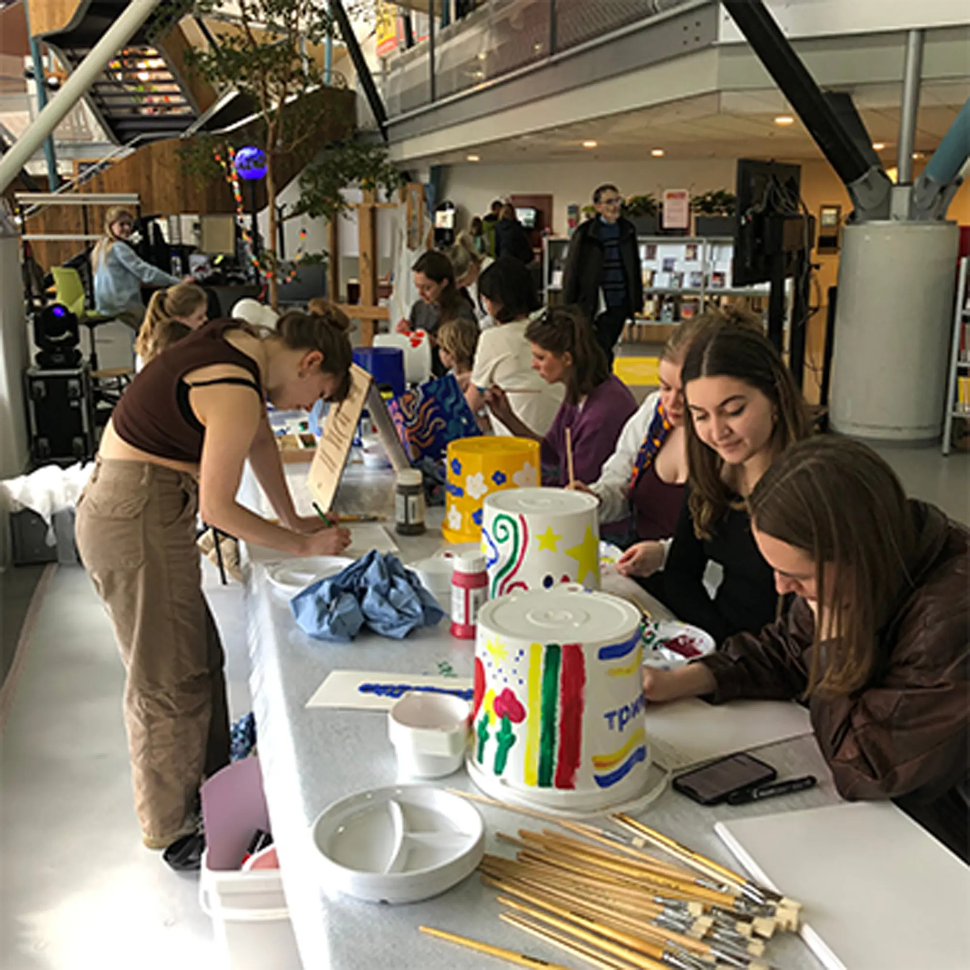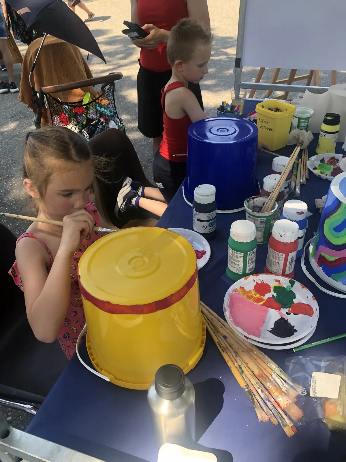 kunnen worden. Op de schilderwerkplaats konden op creatieve wijze deze emmers beschilderd worden. Daarbij diende alleen het woord Trymaisya! op elke emmer te staan. Sommige hebben een boodschap, tekening of hun contactgegevens in de emmer gedaan, zodat ze contact op kunnen.